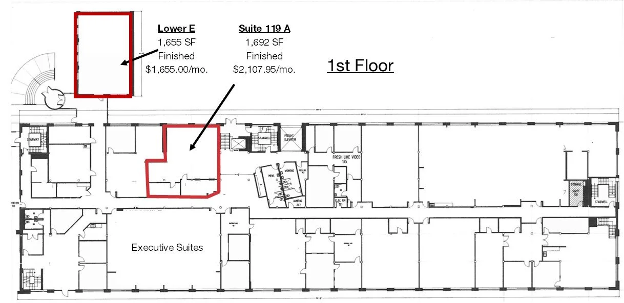 119 A | 1st | 1,692 | $14.95/SF | $2,107.95 | Finished | Tour not available |